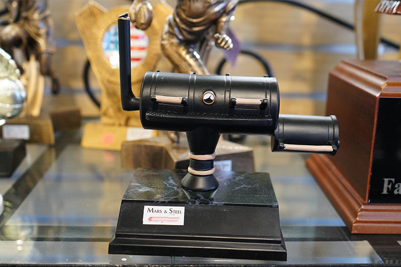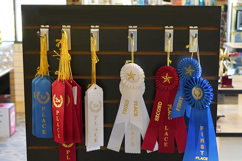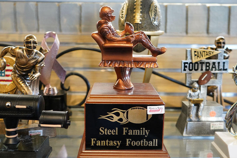 You can order trophies any size, any color, any price, with a figure of your choice. We have trophies starting at $10.00. The first 15 letters are included on each trophy, then .15 per letter.